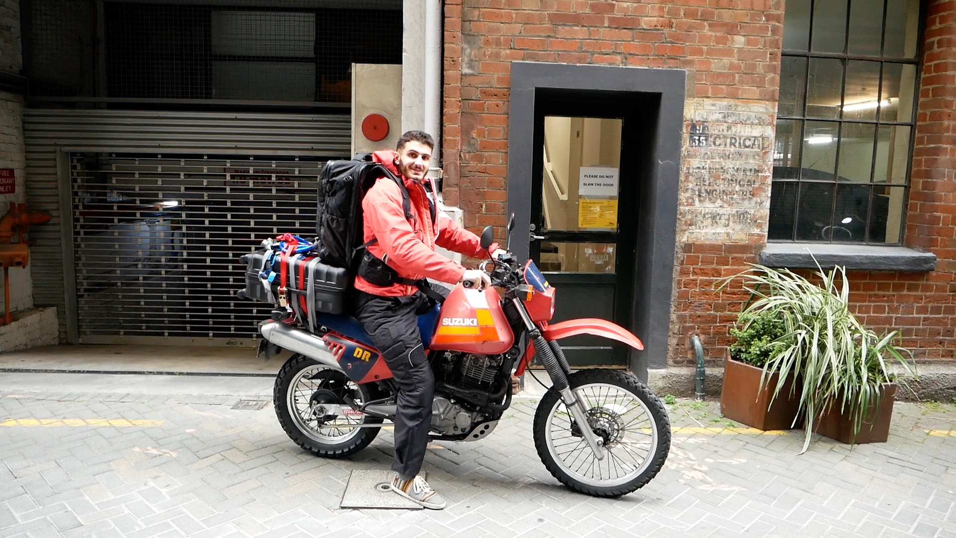 Comme vous le voyez sur les deux photos au-dessus, je suis passé de pas du tout équipé pour le voyage à moto, à bien équipé et protégé !